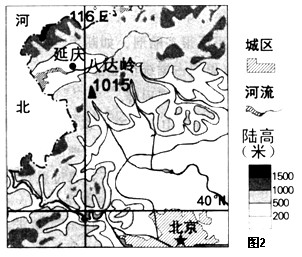 5、综合题 2009年年底,亚洲首座MW(兆瓦)级太阳能塔式热发电站即将在北京延庆县竣工。即时将建成一座100米高的太阳能吸热塔,并在208亩地面上摆放100面自动追踪太阳光的大型反光镜,(即“定日镜”,参见图1),反射聚集阳光到吸热塔内,再转化成电力。据图文材料完成以下各题。