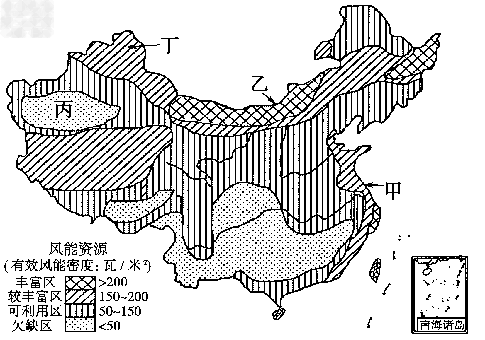 2.据调查,甲地风能资源利用前景优于丁地,其原因是