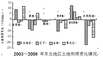 3、单选题 根据 2003~2008 年东北地区土地利用变化情况(如下图)的分析,正确的是