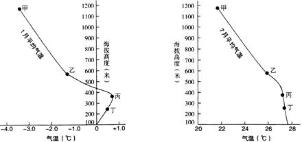 4、单选题 我国某山1月和7月平均气温垂直分布图,读图回答题。