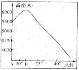4、单选题 下图为沿90°E各地雪线高度分布图,读图回答问题。