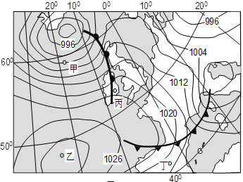 2、单选题 下图为某日某时刻欧洲西部部分地区海平面等压线分布图(单位:百帕)。读图完成下列问题。