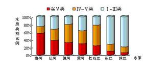 (3)据2004年黄河水系水质类别比例图,说明黄河水系水质类别状况并提出改善黄河水质的合理化建议。