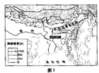 5、单选题 1970年孟加拉国发生特大风暴潮灾害,导致恒河三角洲一带约30万人丧命,100多万人无家可归。读图3,回答以下各题。