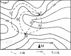 小题1:P、Q两点之间的四条小路中,起伏最小的是???