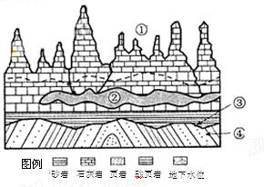 3、单选题 图示为某地地质地貌剖面示意图。读图回答7—8题。