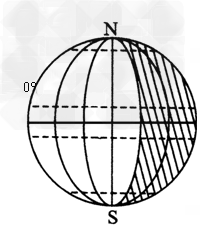 4、单选题 读“地球太阳光照图”(阴影部分表示夜半球),此时