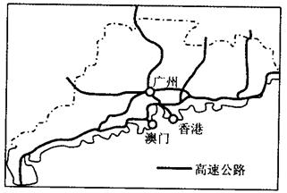 3、综合题  (8分)读广东省高速公路分布示意图,完成下列问题。
