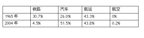 1、单选题 读“日本国内货运结构变化表”,回答1—2题。