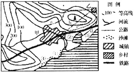 1、图中铁路分布存在着明显的问题,主要是①穿越河流②临近港湾③穿越城区④坡度太大