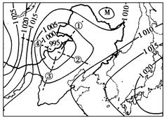2、单选题 读某区域等压线分布图,(单位:百帕),完成小题。