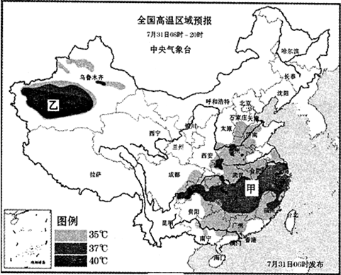 【小题2】当天,乙地区最高气温也在40℃以上,下列叙述与该地出现高温天气无关的是( )