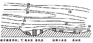 2、综合题 读某城某日清晨低层大气剖面图,完成下面问题。
