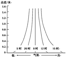 1、单选题 ??? 下图为北半球中纬度某地某日5次观测到的近地面气温垂直分布示意图。当日天气晴朗,日出时为当地时间5点。据此回答1—3题。