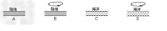 5、单选题 下列图示的四种情况,昼夜温差最小的是