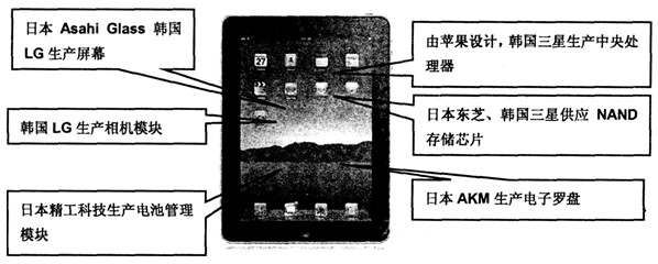 4、单选题 美国“苹果”公司是一家高科技信息技术公司,下图表示“苹果”公司生产的平板电脑(ipad2)的主要零部件产地,据此回答1—2题。