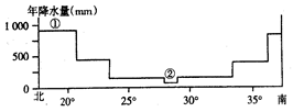 4、单选题 该图为某大陆沿140°经线的年降水量分布图。读图回答16—17题。