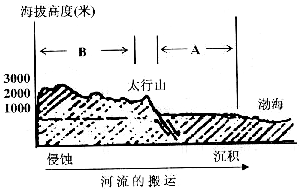 (2)黄河流经A地形区时,河水与河流两侧地下水的关系是___________________,原因是__________________________________。(2分)