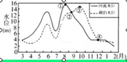 1、单选题 读我国某区域河、湖水位变化示意图,该区域内湖泊与河流有互补关系,回答下列各题。