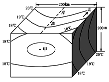 4、单选题 图是信风带中的某海区水温空间分布(水平分布和垂直分布)情况。读图完成下列小题。