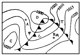 (2)图中的天气系统:C为__________,D为__________。