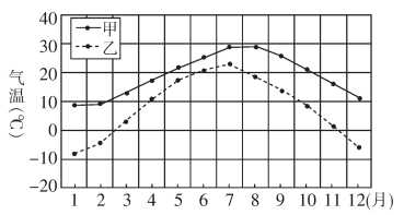 5、单选题 某种农作物生长期约3个月,前期(2个月)最适宜 温度17?22°C,后期(1个月)最适宜温度12?14°C。下图是种植该作物的甲、乙两地气温资料。读图,回答下面各题。