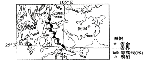 【小题1】读图,图示区是云贵高原地区,图示天气系统是准静止锋。与云南省相比,贵州省纬度较高,位于冬季风的迎风一侧,冬季低温危害较大,C对。两省都是季风气候,洪涝灾害多在夏季,A错。云南省生物种类更加丰富,B错。贵州省多阴雨天气,全年太阳辐射较少,D错。