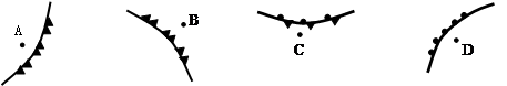 3、单选题 下面四幅锋面示意图中,A、B、C、D四地大致处于同一纬度,此时气温最低的地点是(不考虑地形和海陆因素)?