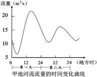 (2)比较甲地河流连续两日的流量变化特点,并从天气状况角度分析原因。(8分)