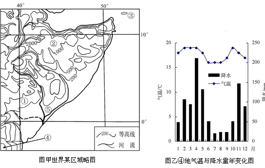 5、综合题 (30分)读图甲和图乙,完成下列问题。