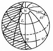 (2)图中,甲乙两地均位于晨昏线中的???????????线上,乙地日出时刻是????????????点钟。
