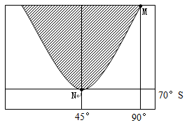 小题3:此日太阳直射20°S,N点在70°S上,该日的正午太阳高度为40°。选项A正确。