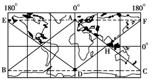 1.若AB为昏线,则H地的区时为2.若DF为晨线,由东半球内属于22日的范围可能是3.在A地进行钻探,设法垂直钻透地球,则最有可能在