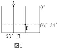 5、单选题  图1中相邻两条经线的经度差为30°,A,B为晨昏线上的两点,太阳直射在西半球。据此完成下列各题。