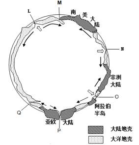 【小题2】L处应该是生长边界,由于美洲板块和亚洲板块的相向运动,太平洋在不断减小,而美洲板块和非洲板块是相反运动的,大西洋扩大,红海在生长边界面积扩大。