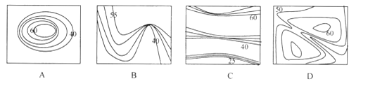 小题2:下图为等高线地形图,最能体现滑坡地貌的是