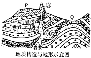 B.Q处岩层因岩浆活动拱起