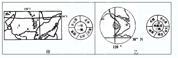 小题1:甲、乙两图所示区域农业耕作制度及作物品种不同的最主要原因是 (??)