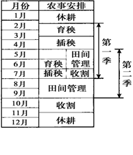 本题解析:试题分析:根据该农业地域类型的农事安排表可知,该种农业地域类型为水稻种植业,其发展的主要生产特点是小农经营;单位面积产量高、商品率低;机械化水平低;水利工程量大;科技水平低。其区位优势为雨热同期、人口稠密,劳动力丰富。