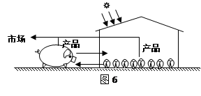 3、单选题 如图6所示,北方某村春夏生产粮食,秋冬利用塑料大棚生产蔬菜,同时开办养猪场。读图回答问题。