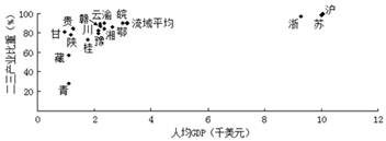 本题解析:本题考查长江流域的区域综合分析。小题1:进入工业化后期,即人均GDP>4000美元;产业结构特征:二三产业比重>90%;结合下图中浙、苏、沪符合。小题1:根据长江流域各省级经济发展水平与阶段,反映长江流域内各省的发展有较大差距:青、藏等省还属于工业化初期阶段;湘、鄂、皖等省处于工业化中期阶段;浙、苏、沪已进入工业化后期阶段。故A项错误。D项正确。