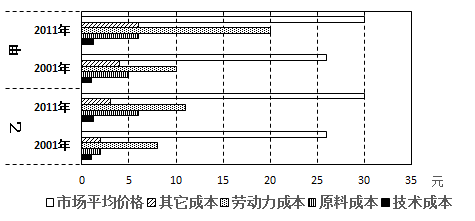4、单选题 读“甲、乙两地某类企业单位产品成本构成和市场价格图”,完成下列各题。