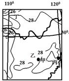 参考答案:(1)26-28;地势高气温低;相邻两条等温线温差2
