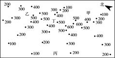 点评:本题组通过若干海拔高度点,虽不是等高线,但我们可以将海拔高度相等的点连接起来,形成等高线地形图。