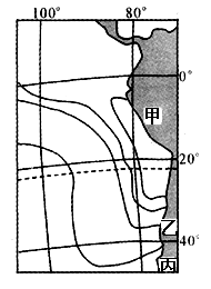 1.图示海域年降水量数值分布的主要特点是2.若要推断乙地的气候类型,着重考虑的因素有3.根据自然带分布规律判断,甲、丙两地自然带分别为