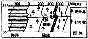 小题2:板块的分布中没有大西洋板块,A错误;图示山麓植被为常绿硬叶林,B错误;图示d位于山麓地带,故由于流水沉积而形成冲积扇,C正确。