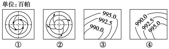 4、单选题 下列四幅图中,其所示范围内可能有阴雨天气的是( )