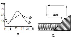 1、单选题 图中,甲、乙分别表示某滨海地区海陆表面气温变化和海陆之间气流运动特征。读图回答下列问题。