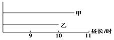 【小题1】甲、乙两地白昼长都短于12小时,说明此时处于冬半年,由此知甲位于乙地南方,又因甲、乙同时日出,可知甲位于乙的西方,故甲位于乙的西南方。