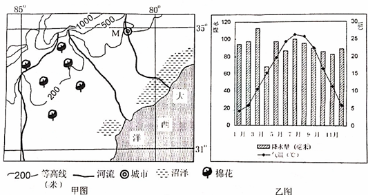 材料一:甲图所示地区是著名的棉花产区,但大面积种植棉花引发了生态环境问题。近年来,该地区大量种植一种根深叶茂的草,农业结构发生了一些变化,生态环境也逐渐好转。